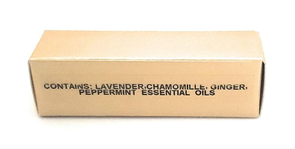 - portable, freshing, digestive discomfort b lend of essential oils. External use only Peppermint, lavendere, ginger and roman chamomille essential oils. The ingredients are in the package.