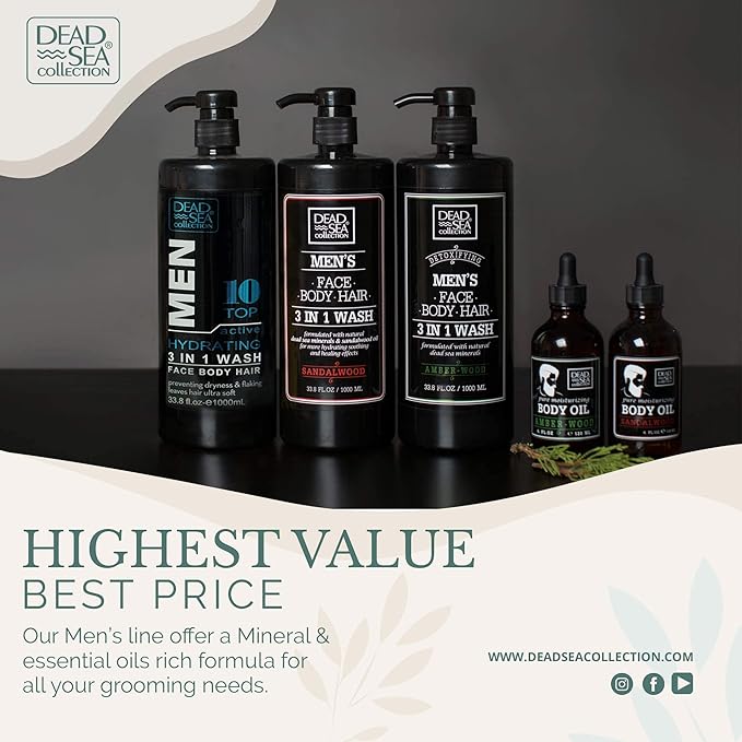 Dead Sea Collection Bath Salts for Men with Sandalwood Oil - Muscle Recovery Bath Soak – Mens Pure Dead Sea Salt for Soothing and Relaxing - 37 Oz
