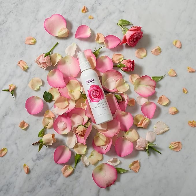 NOW Foods Solutions Rosewater Rejuvenating Mist, Hydration and Rejuvenation Spray for All Skin and Hair Types, 4-Ounce