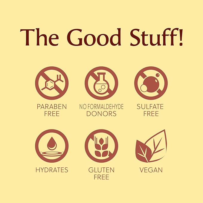 - Vegan, paraben free, sulfate free, gluten free, contains no formaldehyde donors.