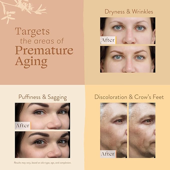 - 🍂 Targets the 4 Main Areas of Premature Aging – Packed with the #1 Highest Antioxidant Plant (Green Tea Matcha), Arabica Coffee Beans, 8 Radiance-Boosting Botanicals, 4 Nutrient-rich Vitamins, and Sodium Hyaluronate to Soften & Replenish your Eye Area. This Vegan Natural Face Cream provides the best defense against: (1) Skin Dryness (2) Fines Lines & Wrinkles (3) Puffiness & Sagging and (4) Discoloration & Dark Circles. Non-greasy Formula.