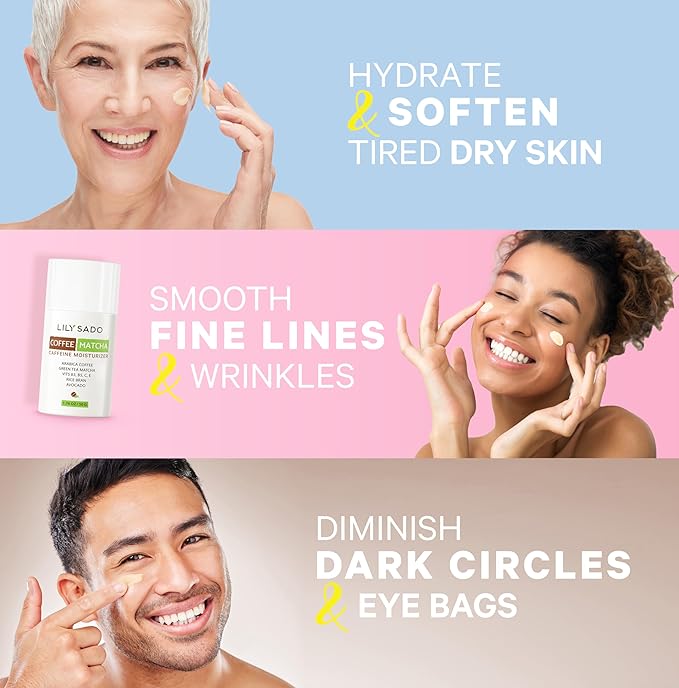 LILY SADO TEA+C™ Coffee & Matcha Face Moisturizer - Natural Vegan Caffeine Facial Cream w Green Tea & Arabica Coffee Beans - Best Antioxidant, Anti-Wrinkle Moisturizing Lotion - Softens & Firms