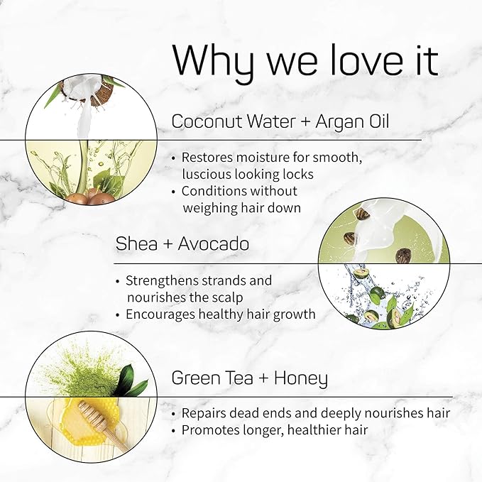 - GREEN TEA: This Restorative blend of green tea and honey helps soothe split ends while deeply nourishing to promote longer, healthier hair.