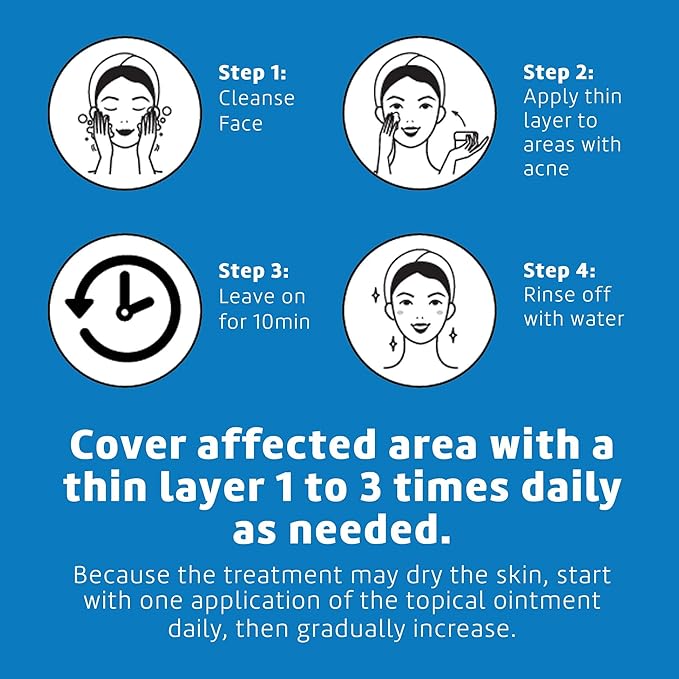 - 10 MINUTE ACNE TREATMENT Apply a thin layer over your face, back or the affected area, wait 10-20 minutes and wash off with warm water. A consistent daily regimen will ensure the best results.