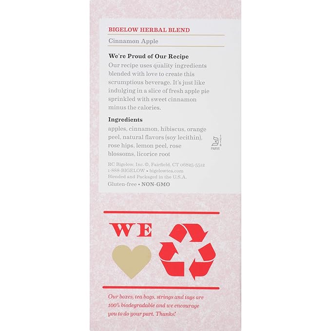 Bigelow Cinnamon Apple Herbal Tea Bags 28-Count Boxes (Pack of 6) Cinnamon Apple Hibiscus Flavored Herbal Tea Bags All Natural Non-GMO