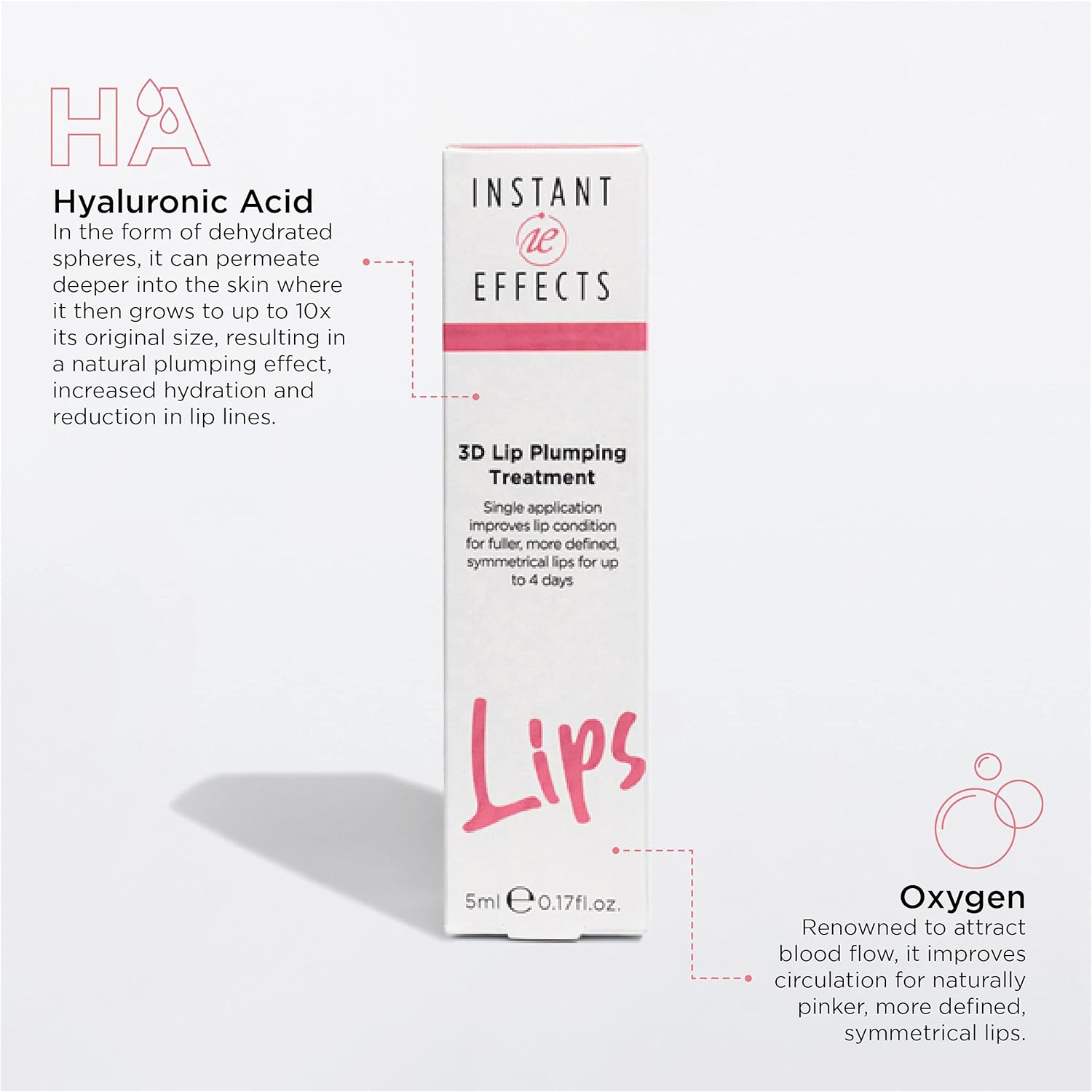 - Containing a blend of patented OX2+ Oxygen Transfer Technology & hyaluronic acid spheres, this plumper pumps oxygen into the lips & gently locks in moisture to increase the volume of lips