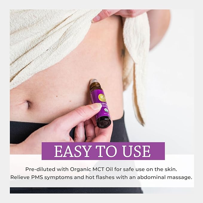 - THERAPEUTIC PROPERTIES: Our roll on is perfect for easing PMS symptoms, mood swings, menstrual cramps, hot flashes and bloating with a soothing abdominal massage. Use for natural balance, stressful days and mental clarity.