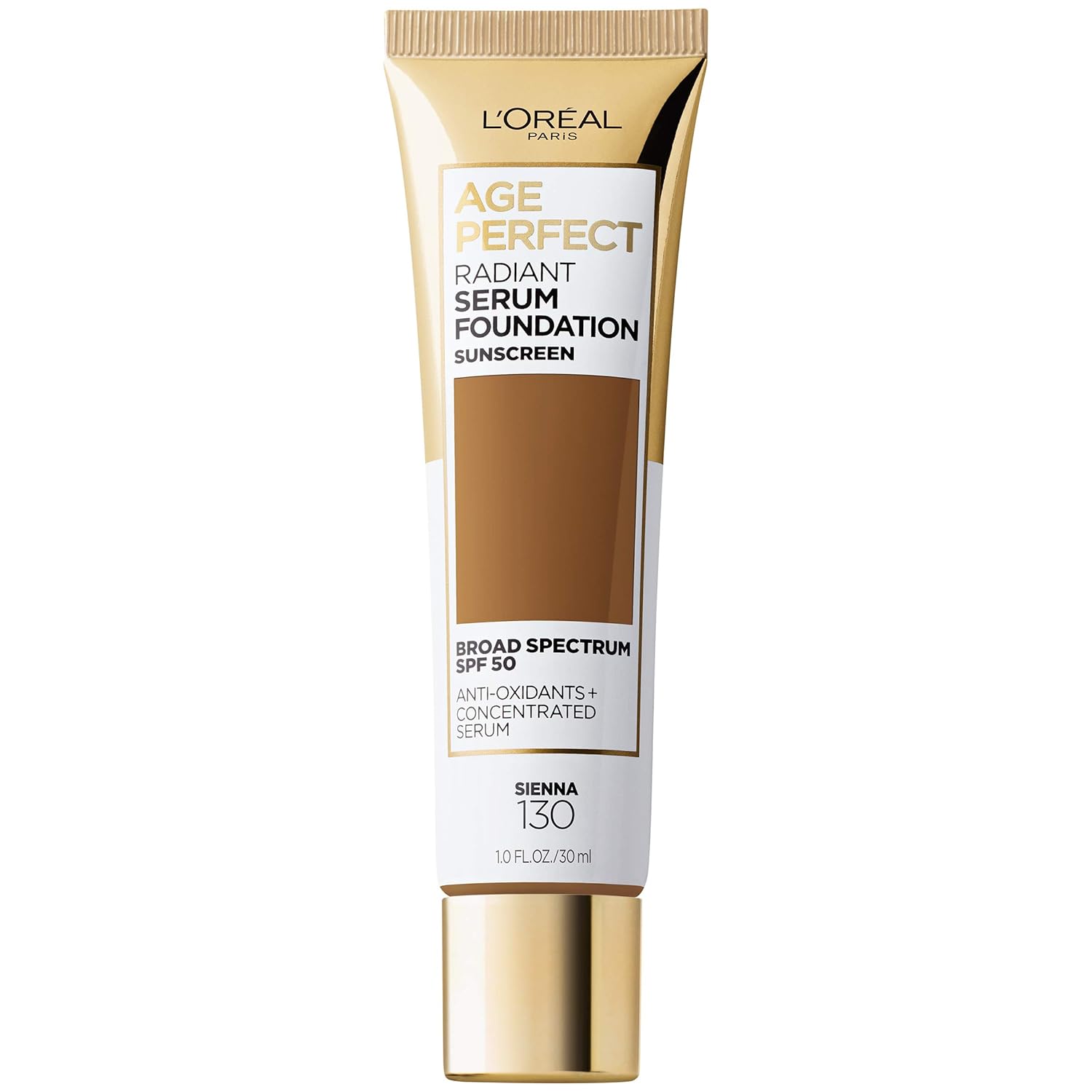 L'Oreal Paris Age Perfect Radiant Serum Foundation with SPF 50, Sienna, 1 Ounce
