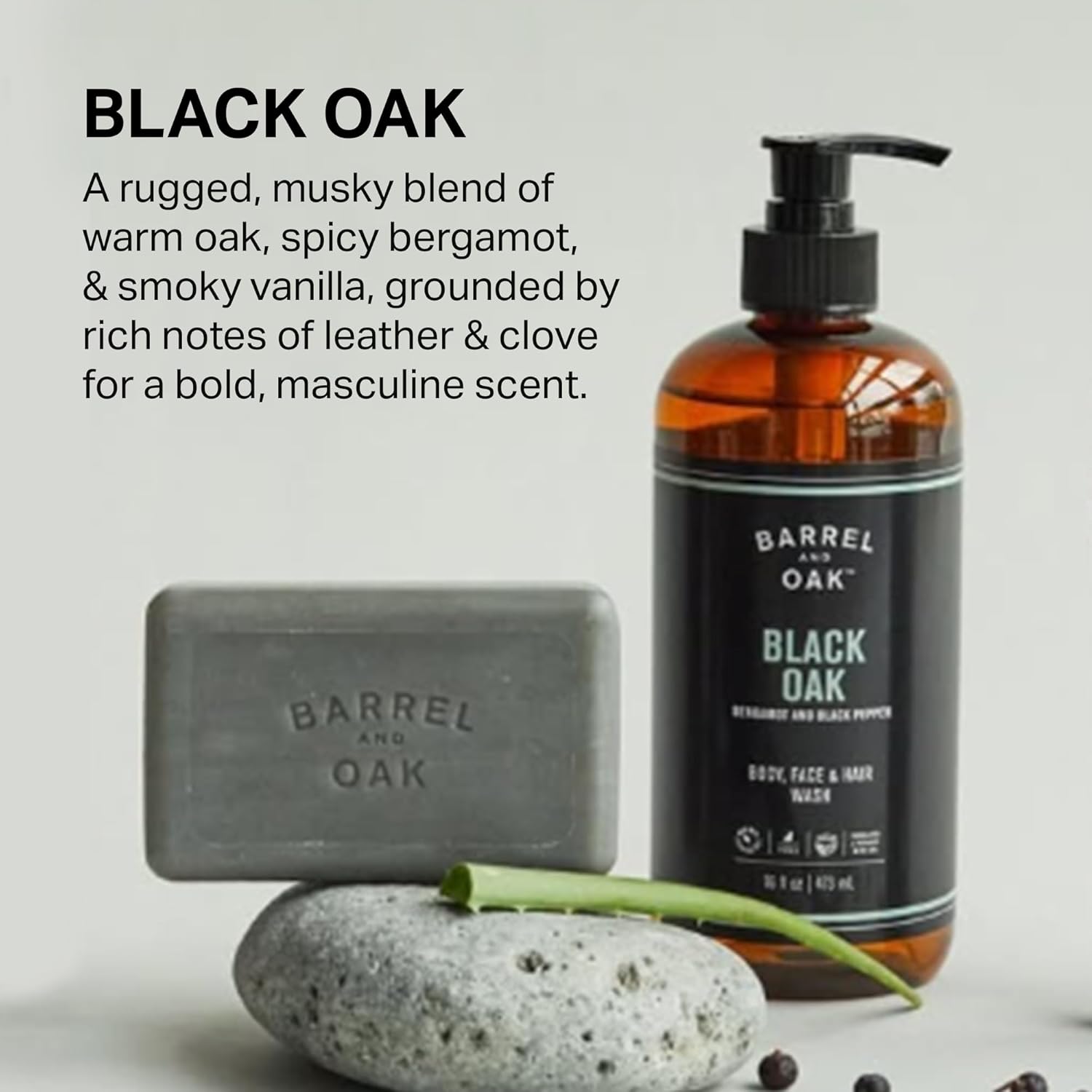Barrel & Oak All-in-One Wash for Face, Hair, & Body, Vegan & Hydrating Face, Shampoo and Body Wash for Men, Grooming Kit Gifts for Men, Black Oak, 16 oz