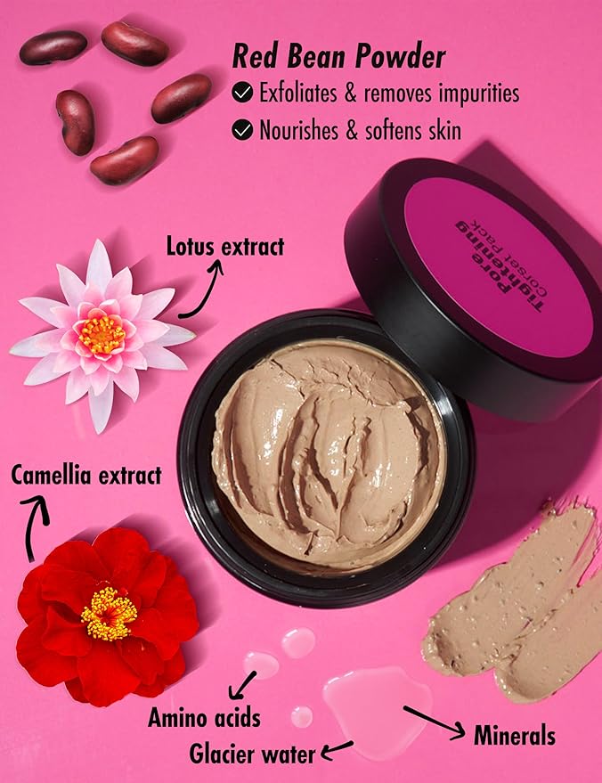 - GENTLE EXFOLIATION. Harnessing the power of Red Bean powder, our clay mask provides a gentle and effective exfoliation journey that leaves your pores looking clear and smoother. With each application, you'll experience a transformative skin care routine that reveals a fresher radiant complexion.
