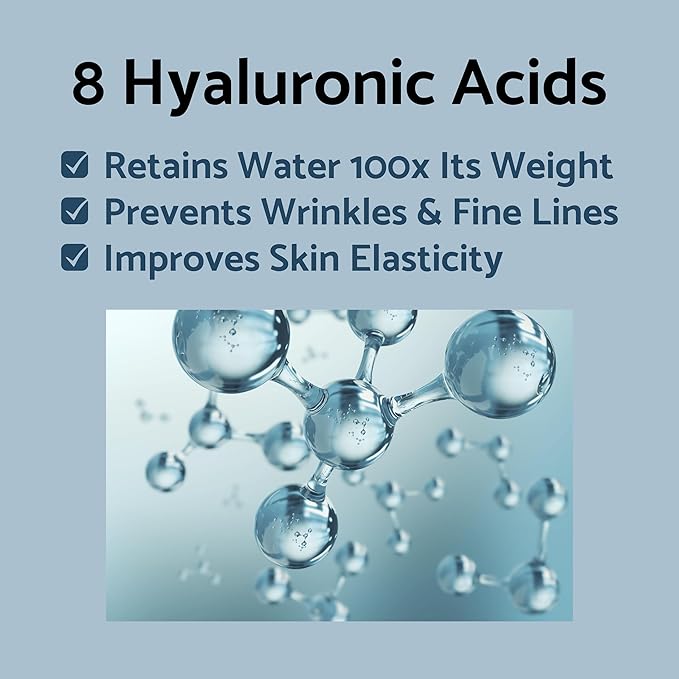 - 💦 Multi-Level Hydration: Infused with a powerful combination of 8 types of Hyaluronic Acid, our cream locks in moisture up to 100 times its weight, ensuring 24-hour hydration for a plump, smooth complexion.