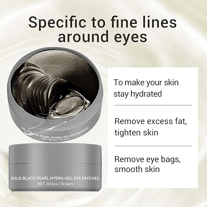 - 🖤EYE MASK MULTIFUNCTION-Collagen can helps the skin to keep it firm and healthy. This black pearl collagen eye patches will restore elasticity to your skin and reduce puffy eyes, improve eyes skin dullness, fine lines and dark circles under your eyes.Black pearl eye patches Effectively improve the skin of the lower eyelid, non-irritating mild formula, clean and refreshing after use.