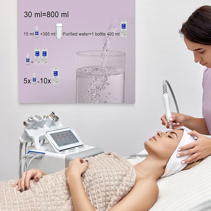 - How to use: each 30 ml bottle can be used with water dilute to 800 ml. Data shows that half a bottle 15 ml bottle can be used with water in 400 ml (the effect is fine).The 30 ml concentrated solution is suitable for hydro beauty microdermabrasion machine. A 30ml bottle should be diluted from 370 ml to 770 ml depending on the desired concentration, so that the starting base contains between 400 ml and 800 ml.