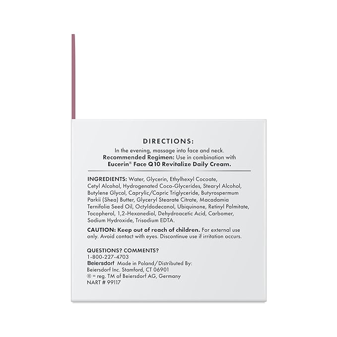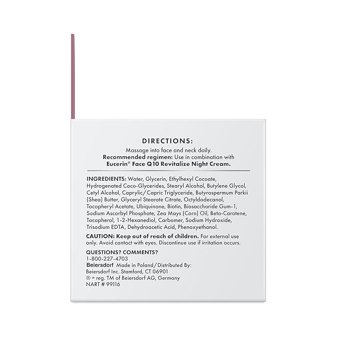 - INCLUDES: One (1) 1.7 ounce jar of Eucerin Q10 Anti Wrinkle Face Cream and one (1) 1.7 ounce jar of Eucerin Q10 Anti Wrinkle Night Face Cream