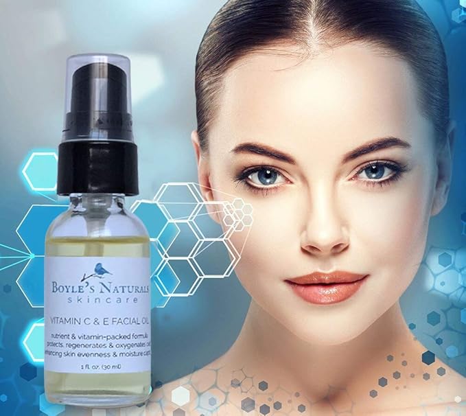 Boyle's Naturals Vitamin C & E Facial Oil Moisturizer for Women - Organic Essential Oil with Rosehip for Dry, Sensitive, Oily, Mature Skin - Skin Care for Wrinkles, Pigmentation, Dark Spot - 1 Oz