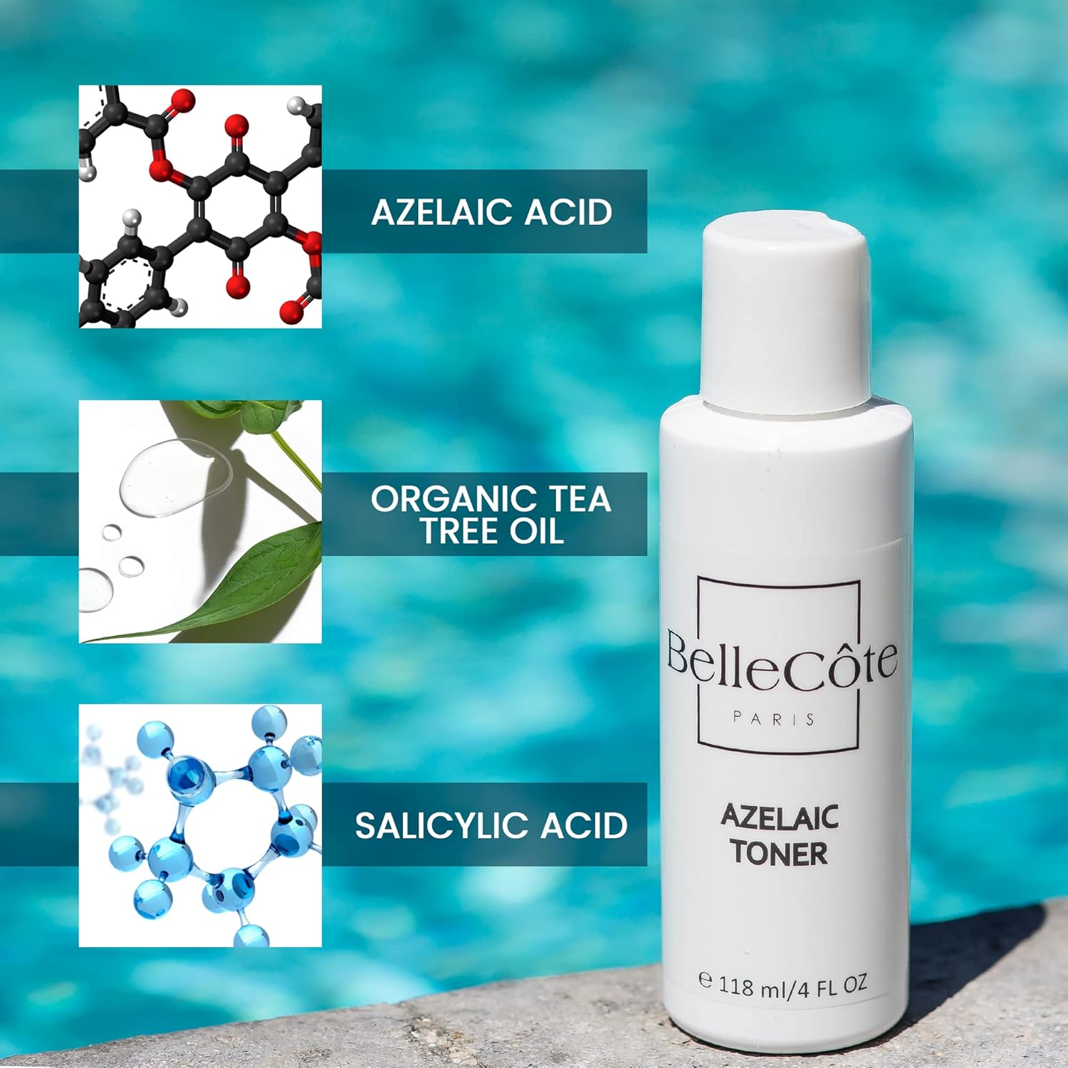 - {𝐒𝐡𝐫𝐢𝐧𝐤𝐬 𝐏𝐨𝐫𝐞𝐬}: BelleCôte Paris brings you an exceptional skin care product that not only shrinks your pores but also aids in rosacea treatment for face, hormonal breakouts and cystic spots. Azelaic toner is a highly absorbent facial toner & pore minimizer with 10% Azelaic and 2% salicylic acid that leaves your skin soft and smooth.