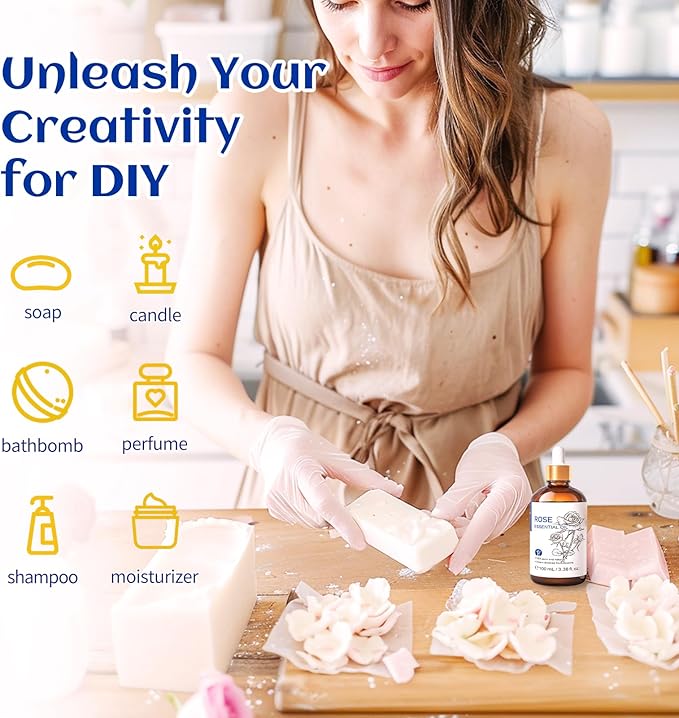 HIQILI Rose Essential Oil for Diffuser, Skin Care, Soap, Perfume & Candle Making - 3.38 Fl Oz