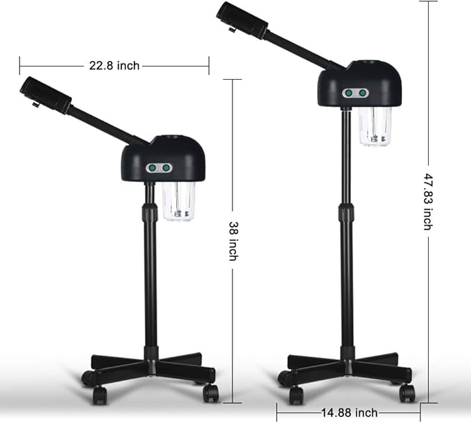 - Adjustable Height & 360° Rotatable Nozzle: The adjustable height(38"-47.83") and 360° rotating nozzle allows you to complete your facial spa at multiple angles and heights conveniently. Place the sponge in the aromatherapy cartridge at the nozzle, drop in the aromatherapy oil and enjoy your aromatherapy spa.
