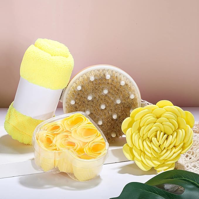 - 🔍 Come with essential oil, bubble bath, shower gel, hand cream, body lotion, body butter, bath bombs, bath salt, shampoo bar, pouf sponge, shower cap, bath brush and handmade tote bag.