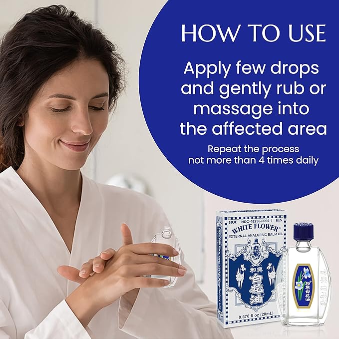 White Flower External Analgesic Balm Oil Combo 20ml/0.676flOz + 2.5ml/0.085flOz, Muscle Joints Topical Arthritis Pain relief, Eucalyptus Levander Peppermint Massage Oil Authentic US import(2 Pack)