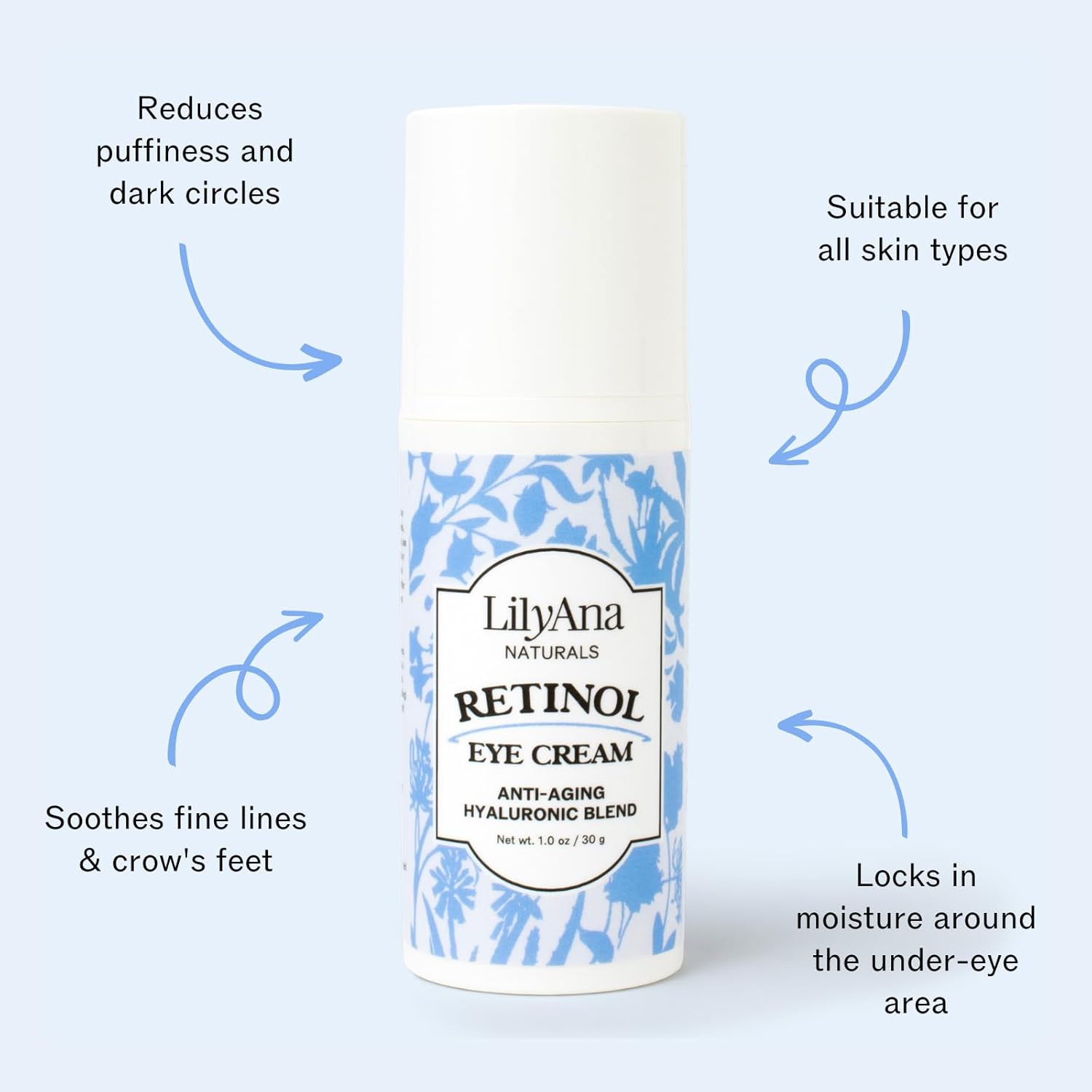 LilyAna Naturals Eye Cream - Eye Cream for Dark Circles and Puffiness, Under Eye Cream, Anti Aging Eye Cream Reduce Fine Lines and Wrinkles (1.0 Ounce, Retinol)
