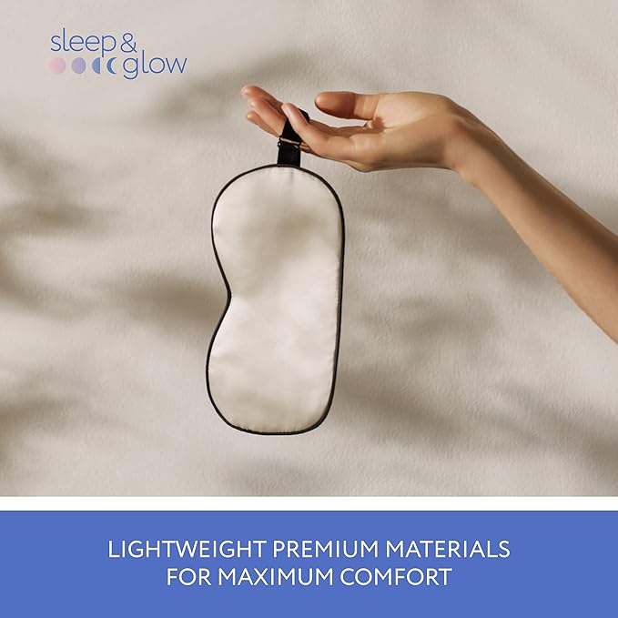 SLEEP & GLOW Silk Sleep Eye Mask Luxury Mulberry 22 Momme 100% Natural Triple Silk Blindfold with Adjustable Strap for Comfortable Sleeping & Face Skin Care (White)