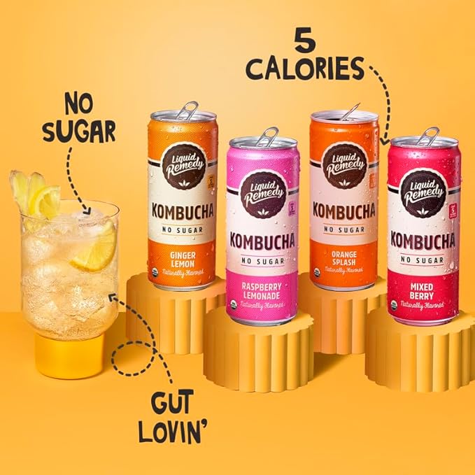 Liquid Remedy Kombucha Sugar Free Organic Drink, Low Calorie, Probiotic Like Tea for Gut Health - Fan Favorites Variety Pack - 8.5 Fl Oz Can, 24-Pack