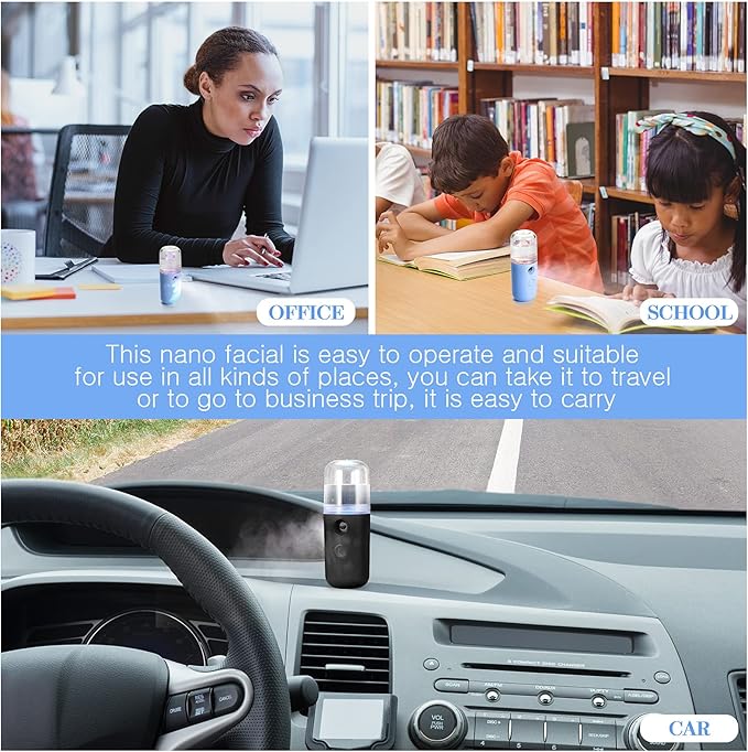 - Operate easily: this portable mini face humidifier is easy to operate, when you need to use it, just fill it with mineral water, and then press the switch, it will automatically emit a soothing cool feeling, USB charging is also easy to use, satisfying your daily needs; Please be careful not to use it while charging to prevent potential safety hazards; It can be applied after about 1 hour of normal charging