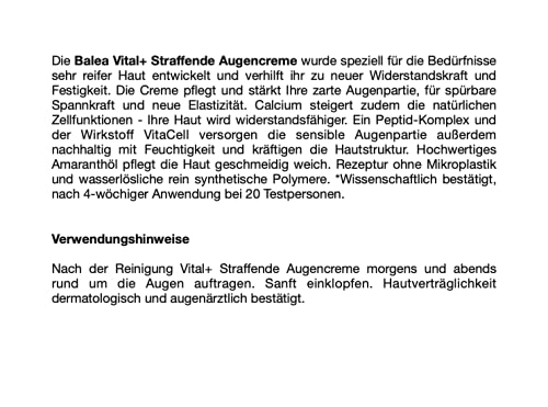 Balea Eye cream VITAL + Firming Eye Cream, 15 ml (Age: +50)