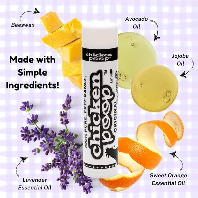 .15 oz. Chicken Poop® ORIGINAL FLAVOR Lip Junk for Dry, Chapped Lips, LIP BALM PACK OF 4