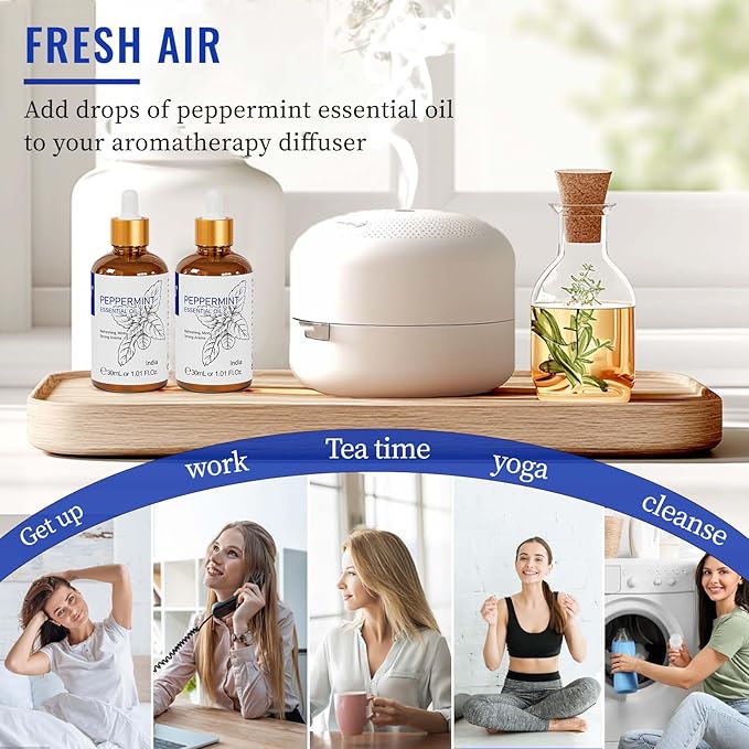 • Refreshing Comfort: Transform your space with just 3-5 drops of our refreshing mint essential oil in your diffuser
