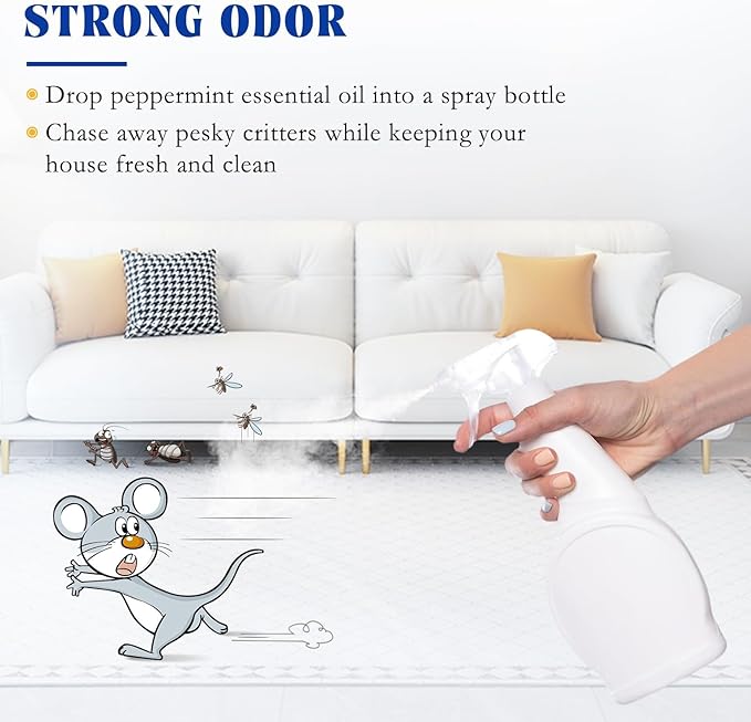 • Repel Small Animals: Mix peppermint oil with water in a spray bottle and spray around the house, Garden, Porch, And window sills