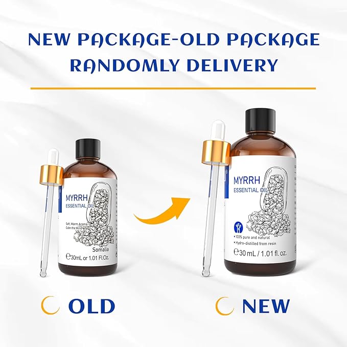 HIQILI Myrrh Essential Oil, for Skin, Massage, 100% Pure & Natural - 1.01 Fl Oz
