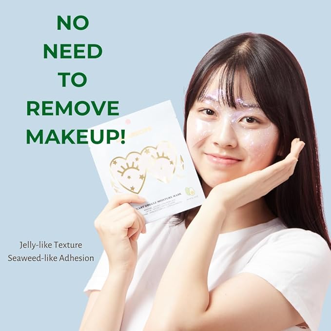 Heart Goggle Moisture Eye Mask – Hydrating & Cooling Hydrogel Patches with 8-Hyaluronic Acid, Avocado & Collagen – Korean Skincare for Dry & Sensitive Skin (Pack of 10)