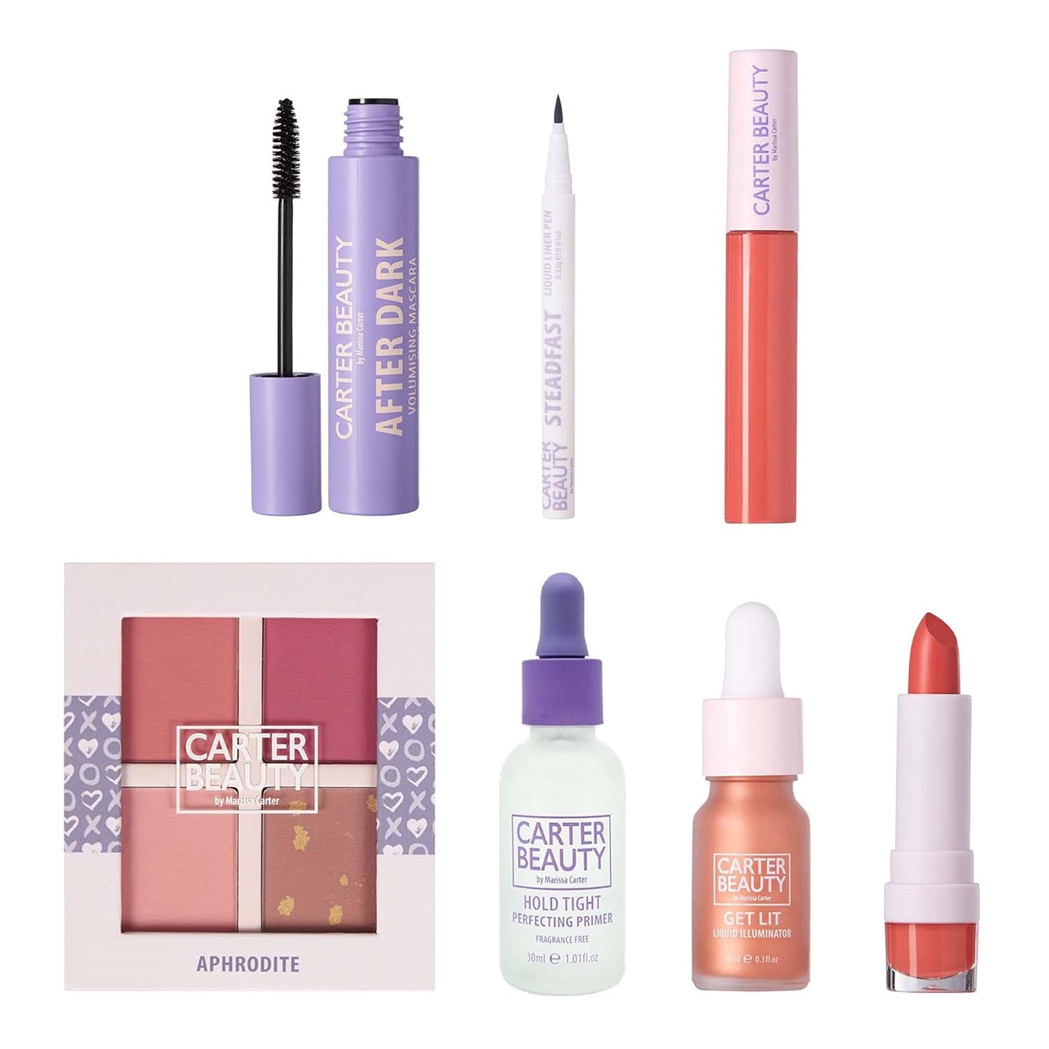 Carter Beauty Make Up Edit Giftbox - Makeup Must Haves - Creates Perfect Eye And Face Looks - Includes Mascara, Eyeliner, Lipstick, Primer, Blush Palette - Vegan And Paraben Free - 7 Pc Gift Set