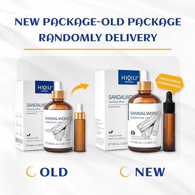 HIQILI Sandalwood Essential Oils, Long-Lasting Scent for Perfume, Diffuser, Soap Making & Candle- 3.38 Fl Oz
