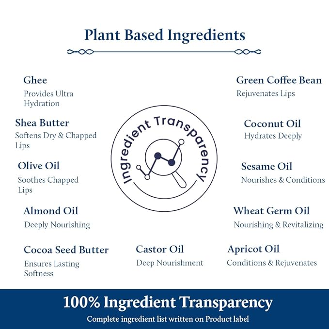 - Product Benefits : Enriched with Organic Ghee & Shea Butter, hence crafted to heal, prevent chapped & dry lips