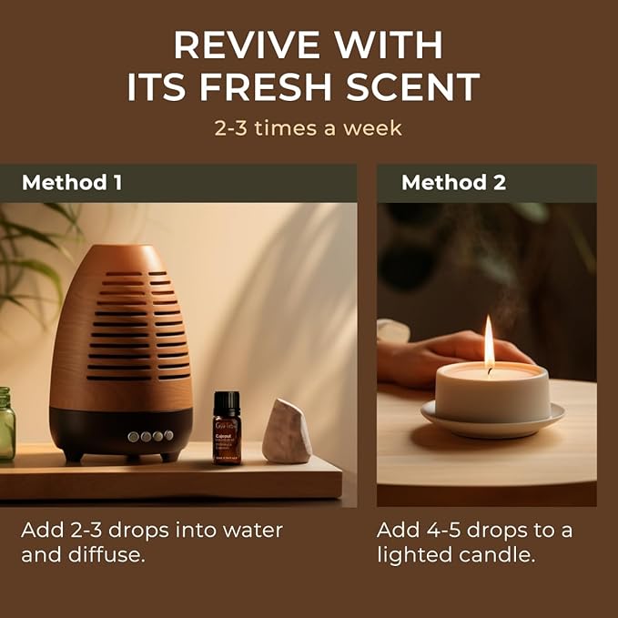 - Cajeput oil diffuser essential oils. Cajeput essential oil diffuser imparts a refreshing camphorous scent when used for diffuser. Simply add 2-3 drops of oil to water to enjoy an invigorating & uplifting aroma in any room.