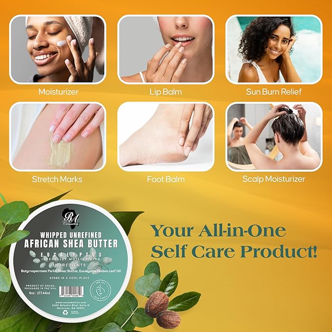 RA COSMETICS - 100% Natural Whipped Moisturizing African Shea Butter 6 oz Unscented Ultimate Skin Moisturizer
