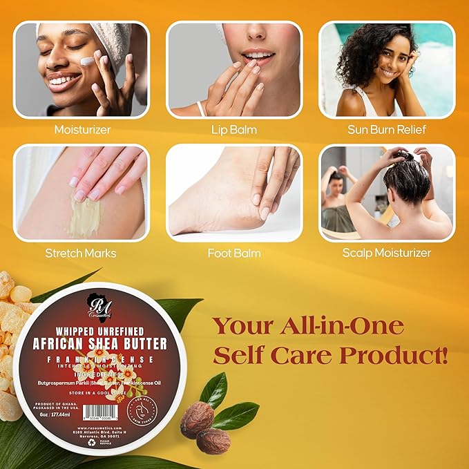 - Premium Whipped Shea Body Butter: Simplify your beauty routine with our versatile shea butter that caters to both your hair and skin needs. Our rich and creamy shea butter instantly renews and replenishes intense moisture, leaving your skin and hair luxuriously hydrated from head to toe.