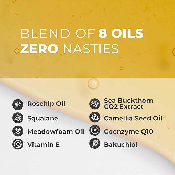 - PREMIUM ANTI-AGING NIGHT FACE OIL: Ayurvedic Sea Buckthorn and Rosehip oils combined with Bakuchiol (nature's retinol) target fine lines, wrinkles and dryness - specifically formulated for women experiencing thinning skin caused by harmonal imbalance or harsh retinols
