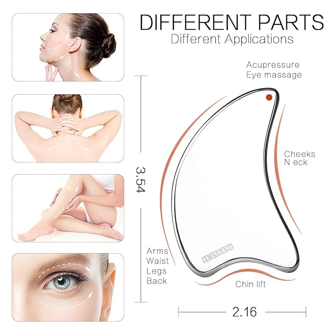 - Material: Medical grade Stainless Steel, polished to a mirror- like finish, our massage tools are durable.The Stainless Steel guasha is long lasting no need to worry about falling. Durable than jade , stone guasha tool