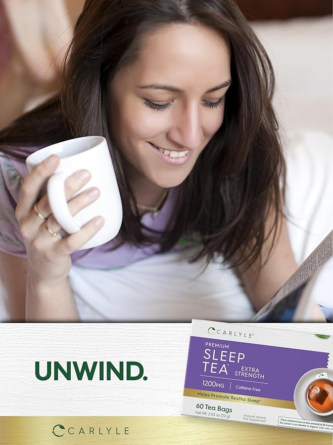 Carlyle Sleep Tea Extra Strength | 60 Tea Bags | Caffeine Free | Bedtime Tea | Herbal Blend with Valerian Root | Vegetarian, Non-GMO, Gluten Free