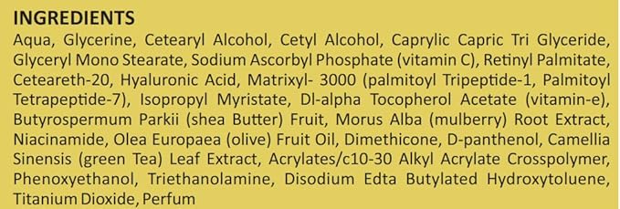 - Infused with Retinol, Triple Peptide, Hyaluronic Acid, Green Tea, Olive Oil, Vitamins C, E, B3 & B5 for anti-aging benefits