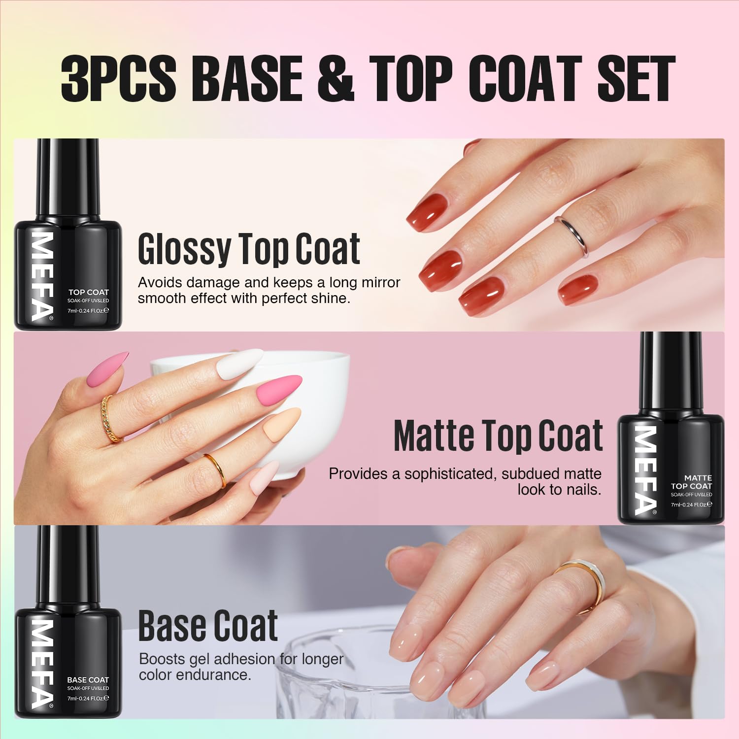 - Classic Gel Nail Kit: This kit includes all manicure tools, like 1*48W LED lamp, 32*7 ml gel nail polish, 1*7 ml base coat, 1*7 ml glossy top coat, 1*7 ml matte top coat, cuticle oil pen, rhinestones gems, 6*glitter flakes, 2*false swatches, and so on; gel polish bottle size: 0.98*0.59*2.16 inches, 0.024 Pounds