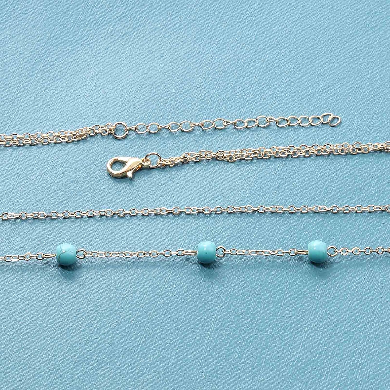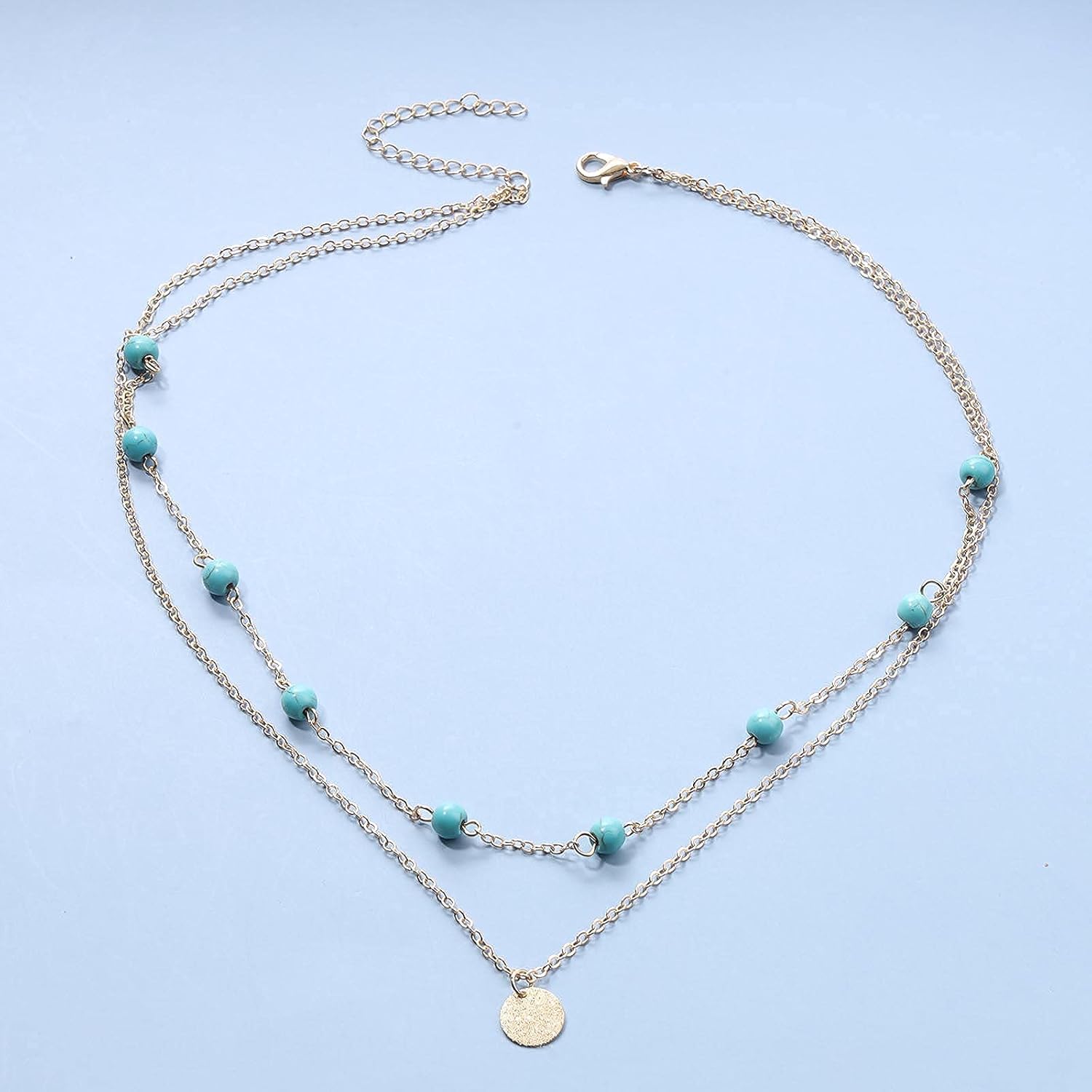 Boho Layered Coin Turquoise Necklace Gold Hammered Coin Disc Pendant Necklace Vintage Necklace Chain Jewelry for Women