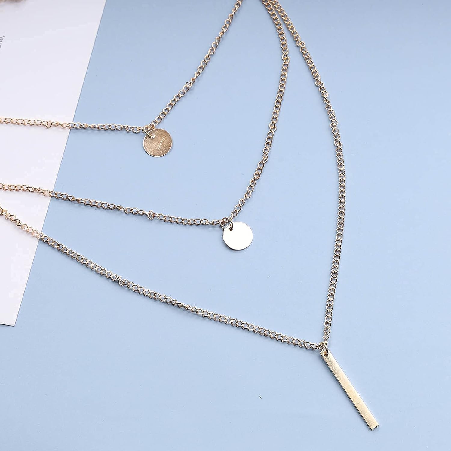 - Vintage Layered Disc Necklace Chain with Real Images,keep color and not fade.