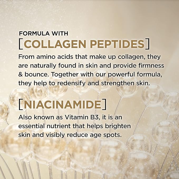 - Collagen Peptides: Recommended by dermatologists, peptides are the building blocks of Collagen which gives skin its volume, firmness and bounce; Allergy tested, suitable for sensitive skin; Free from parabens and mineral oil