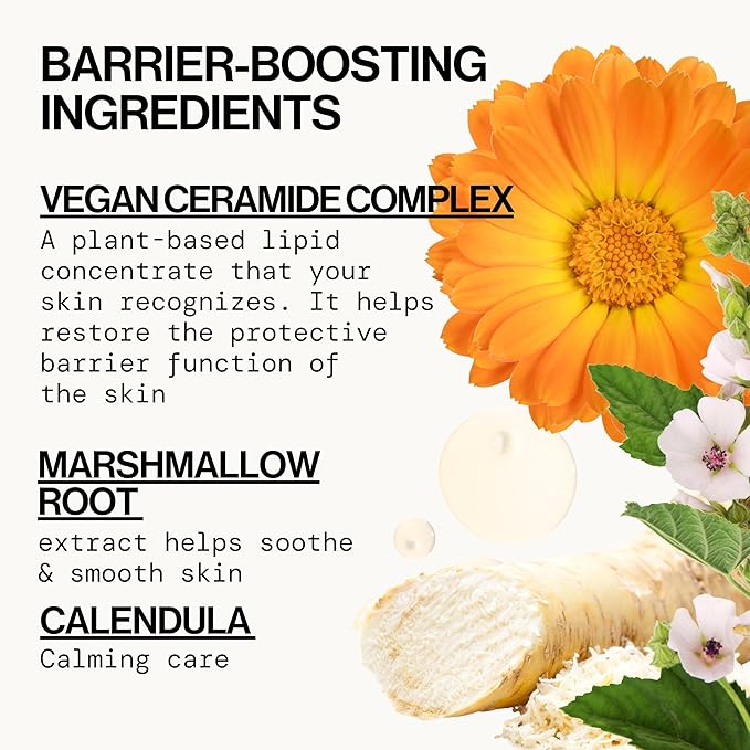 - Vegan Ceramide Barrier Care – Infused with plant-based ceramides that help restore and strengthen the skin’s protective barrier. Supports moisturization and soothes dryness, leaving sensitive skin calm, soft and nourished after cleansing. Ideal for easily irritated or eczema-prone skin.