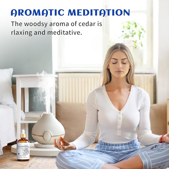 HIQILI Cedarwood Essential Oil (3.38 Fl Oz), 100% Natural Therapeutic Grade, Premium Glass Dropper, for Hair & Skin Care, Soap Making, Add to Diffusers, Sprays